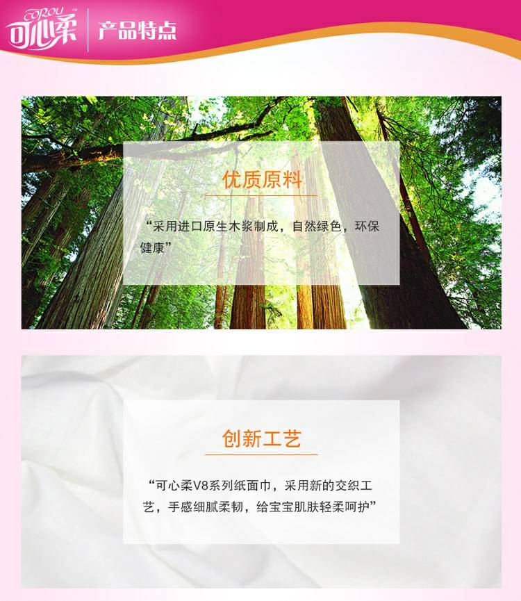 可心柔 V8系列CoRou云柔系列白色木浆40抽